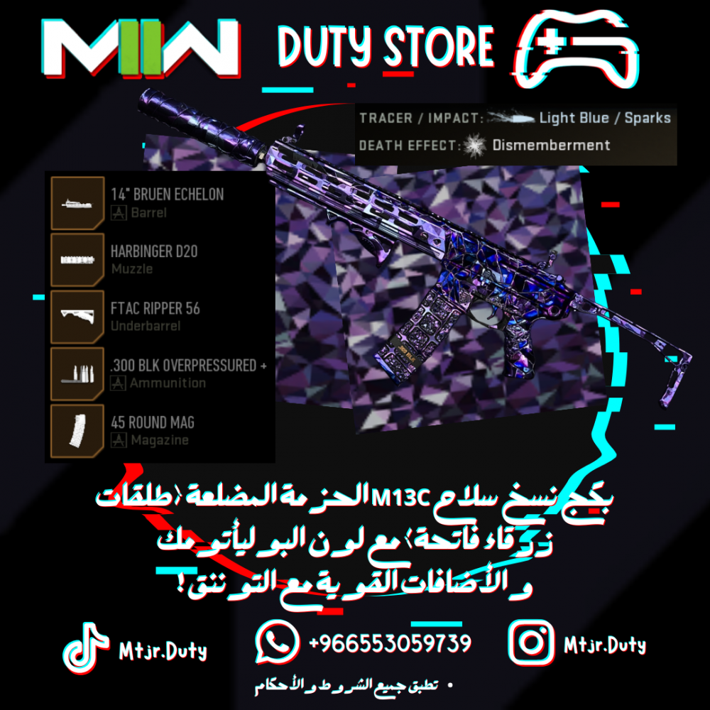 بكج نسخ سلاح M13C الحزمة المضلعة (طلقات زرقاء فاتحة) مع لون البوليأتومك والأضافات القوية مع التوننق !