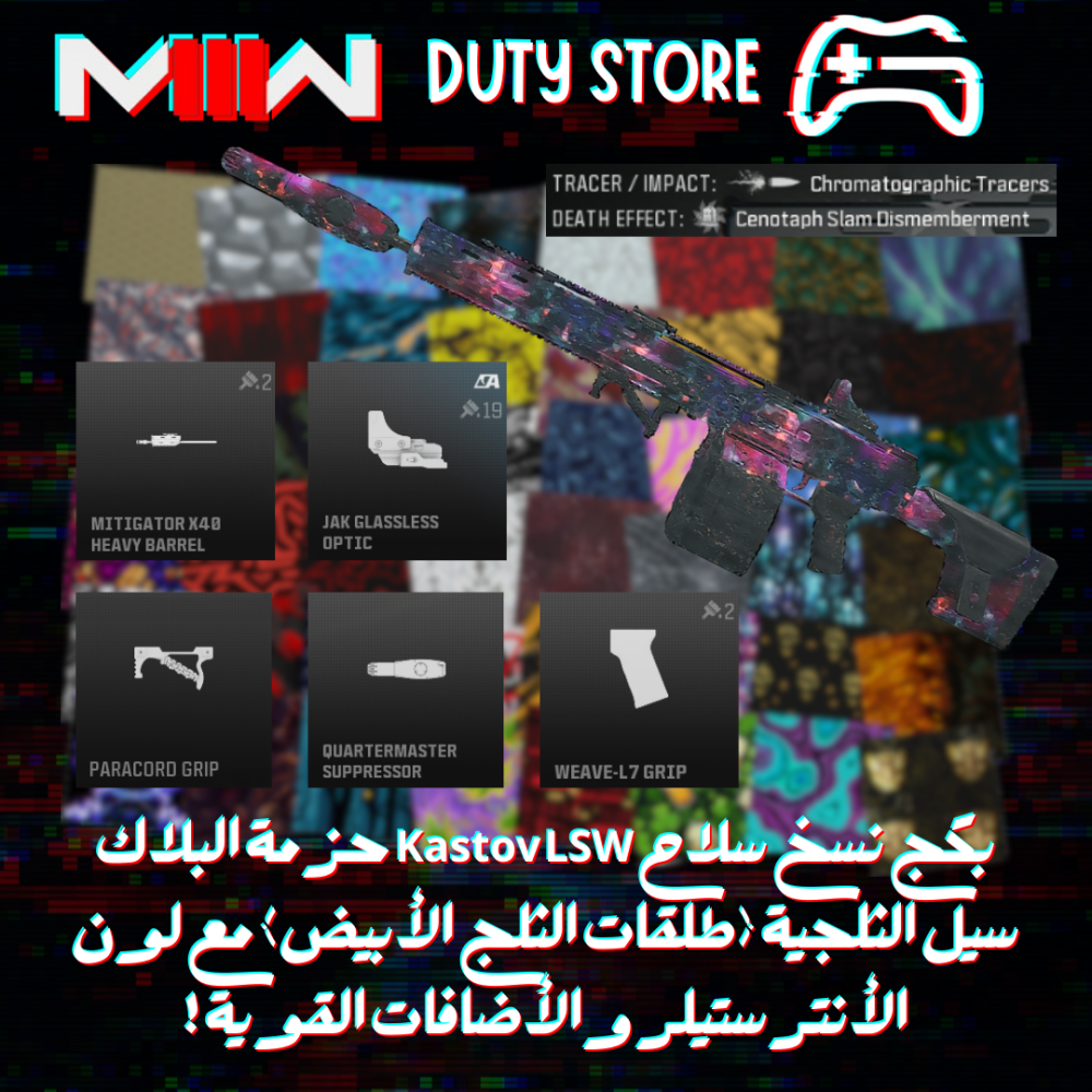 بكج نسخ سلاح Kastov LSW حزمة البلاك سيل الثلجية (طلقات الثلج الأبيض) مع لون الأنترستيلر والأضافات القوية ! (جميع المنصات)