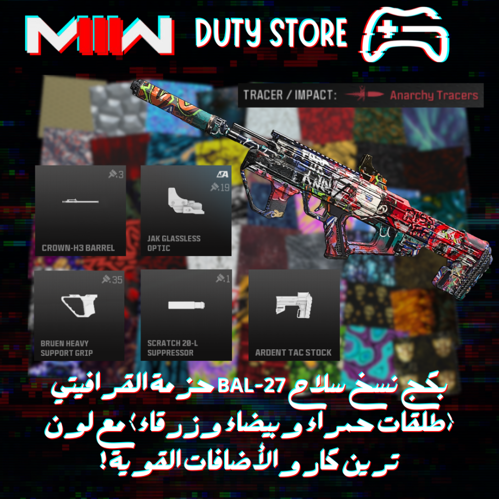 بكج نسخ سلاح BAL-27 حزمة القرافيتي (طلقات حمراء وبيضاء وزرقاء) مع لون ترين كار والأضافات القوية ! (جميع المنصات)