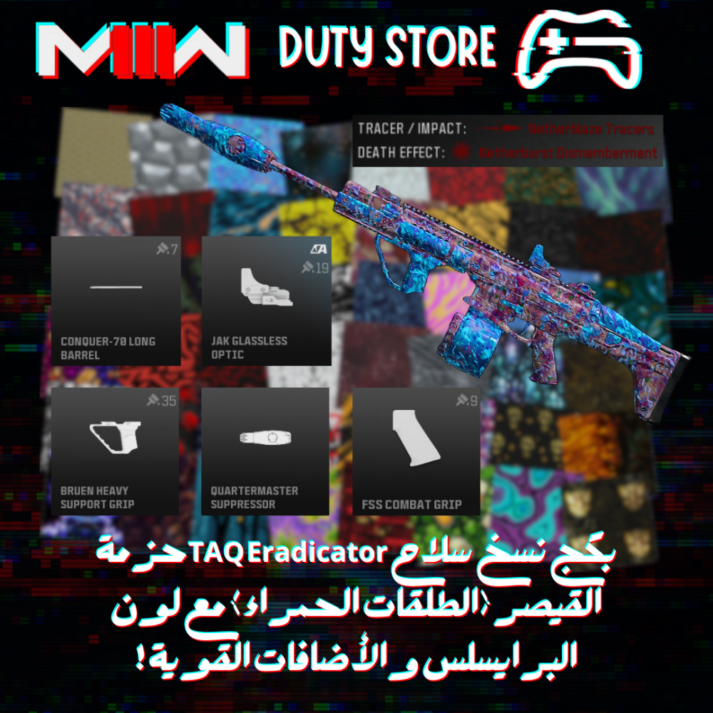 بكج نسخ سلاح TAQ Eradicator حزمة القيصر (الطلقات الحمراء) مع لون البرايسلس والأضافات القوية ! (جميع المنصات)