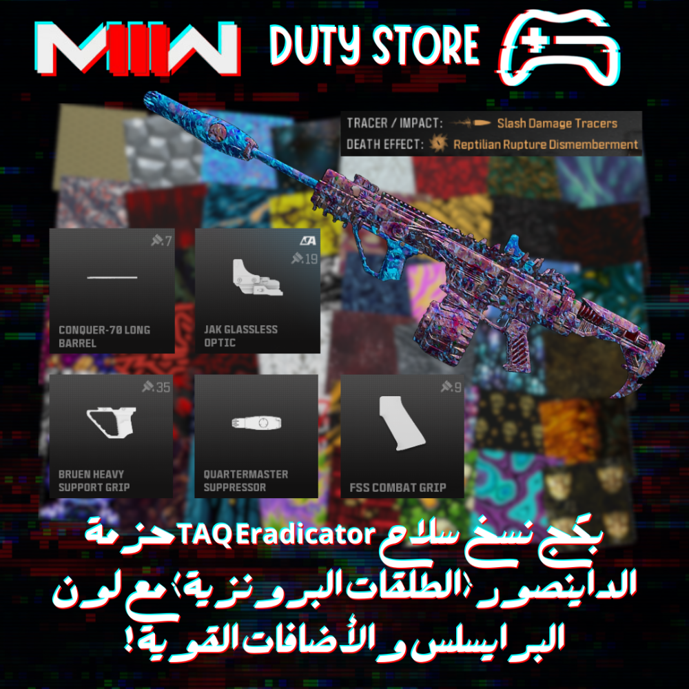بكج نسخ سلاح TAQ Eradicator حزمة الداينصور (الطلقات البرونزية) مع لون البرايسلس والأضافات القوية ! (جميع المنصات)