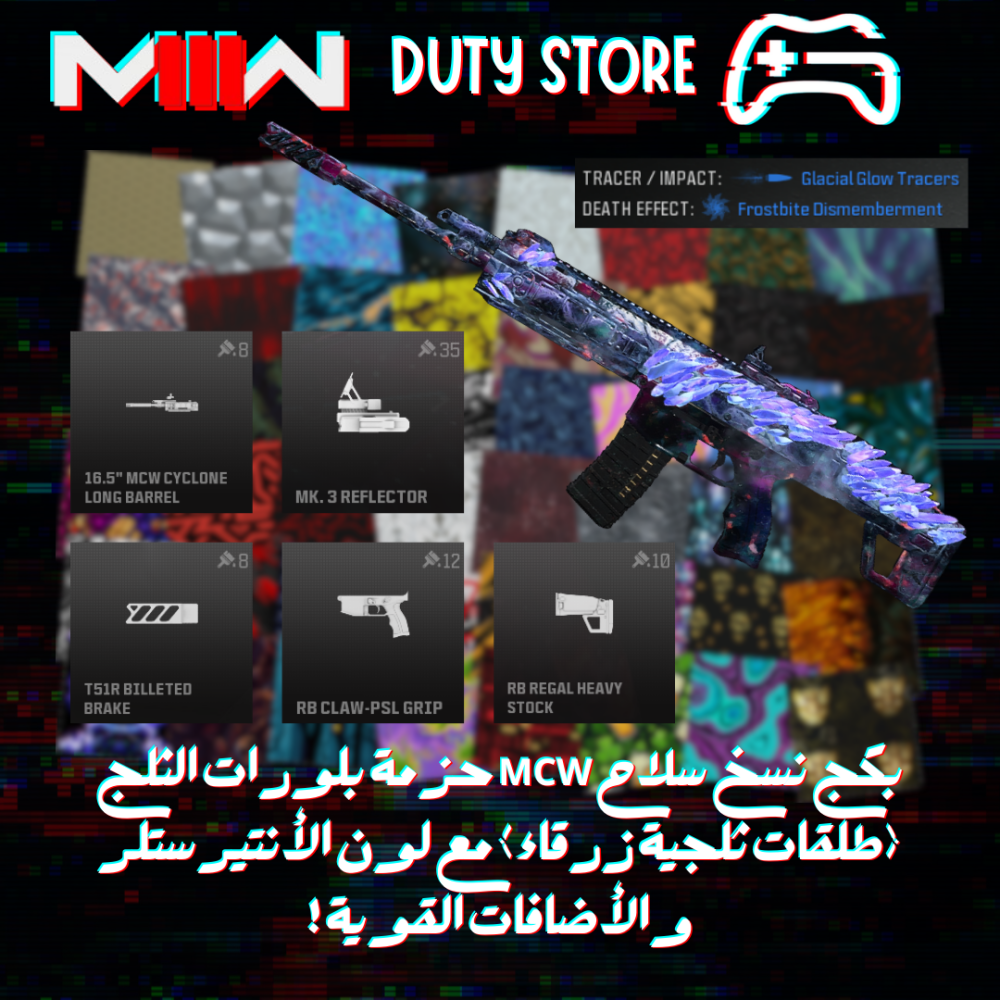 بكج نسخ سلاح MCW حزمة بلورات الثلج (طلقات ثلجية زرقاء) مع لون الأنتيرستلر والأضافات القوية ! (جميع المنصات)