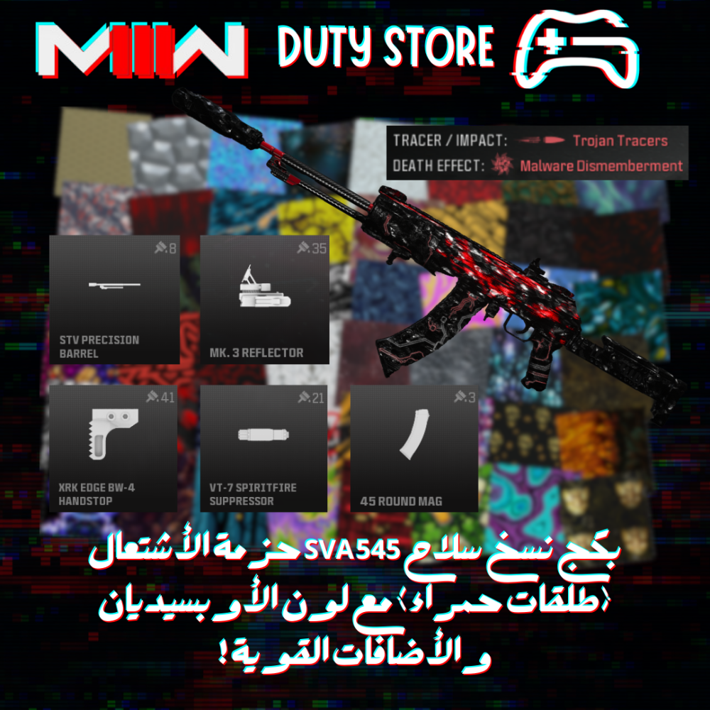 بكج نسخ سلاح SVA 545 حزمة الأشتعال (طلقات حمراء) مع لون الأوبسيديان والأضافات القوية ! (جميع المنصات)