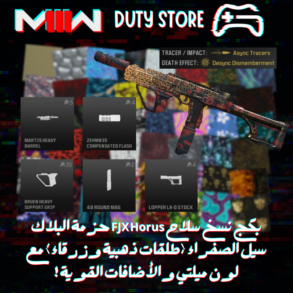 بكج نسخ سلاح FJX Horus حزمة البلاك سيل الصفراء (طلقات ذهبية وزرقاء) مع لون ميلتي والأضافات القوية ! (جميع المنصات)