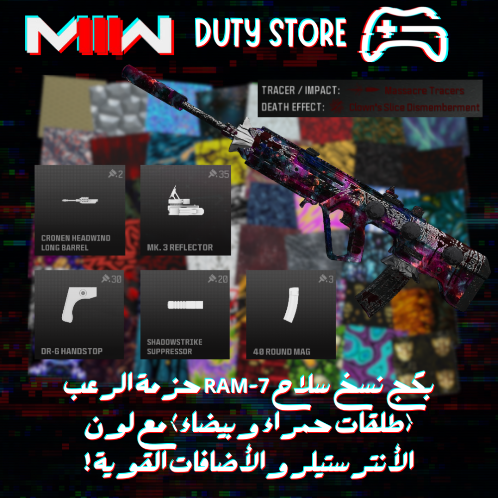 بكج نسخ سلاح RAM-7 حزمة الرعب (طلقات حمراء وبيضاء) مع لون الأنترستيلر والأضافات القوية ! (جميع المنصات)