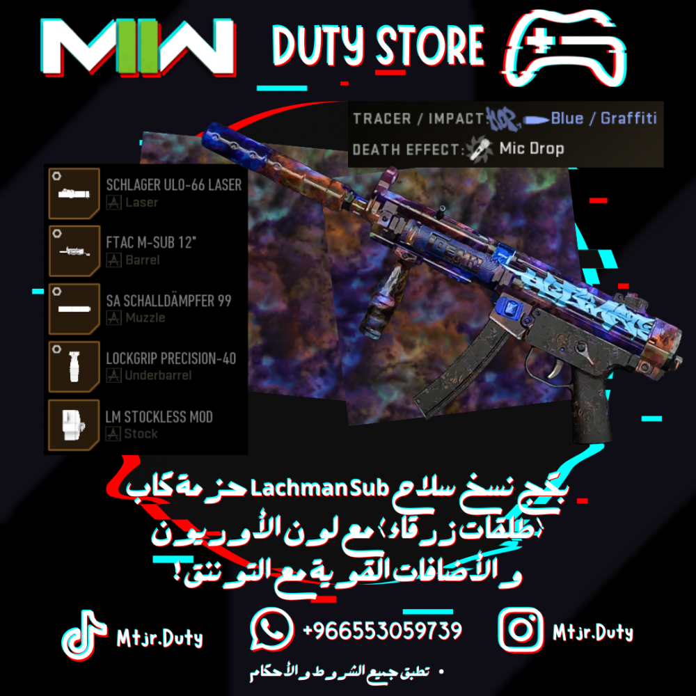 بكج نسخ سلاح Lachman Sub حزمة كاب (طلقات زرقاء) مع لون الأوريون والأضافات القوية مع التوننق !