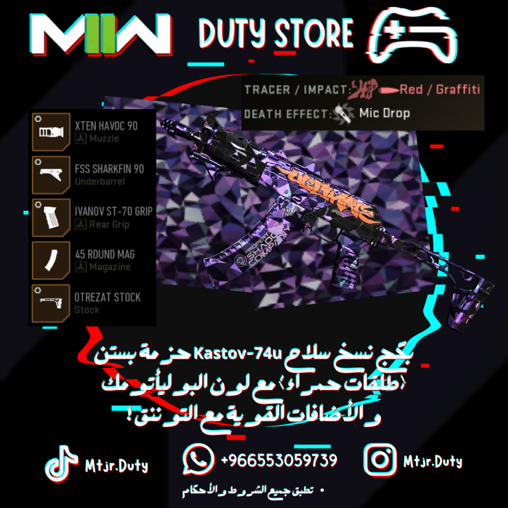 بكج نسخ سلاح Kastov-74u حزمة بستن (طلقات حمراء) مع لون الأوريون والأضافات القوية مع التوننق !