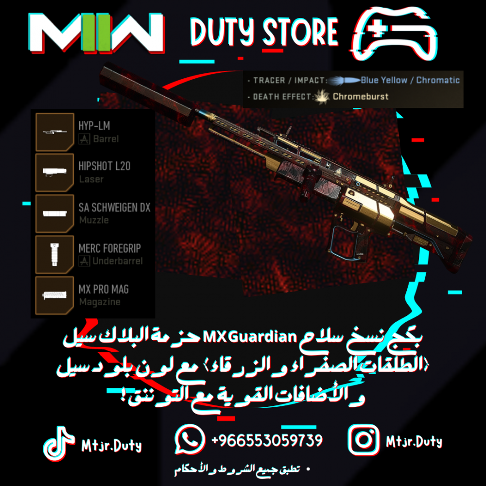 بكج نسخ سلاح MX Guardian حزمة البلاك سيل (الطلقات الصفراء والزرقاء) مع لون بلود سيل والأضافات القوية مع التوننق !