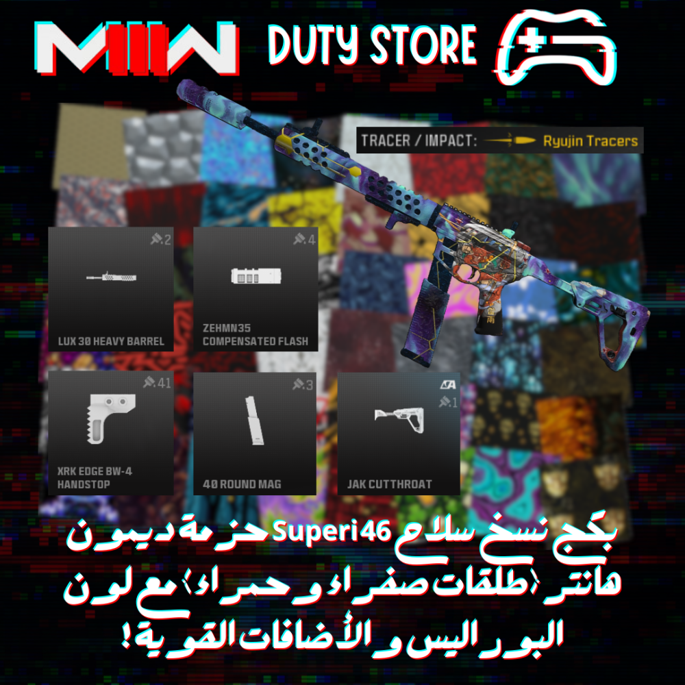 بكج نسخ سلاح Superi 46 حزمة ديمون هانتر (طلقات صفراء وحمراء) مع لون البوراليس والأضافات القوية ! (جميع المنصات)