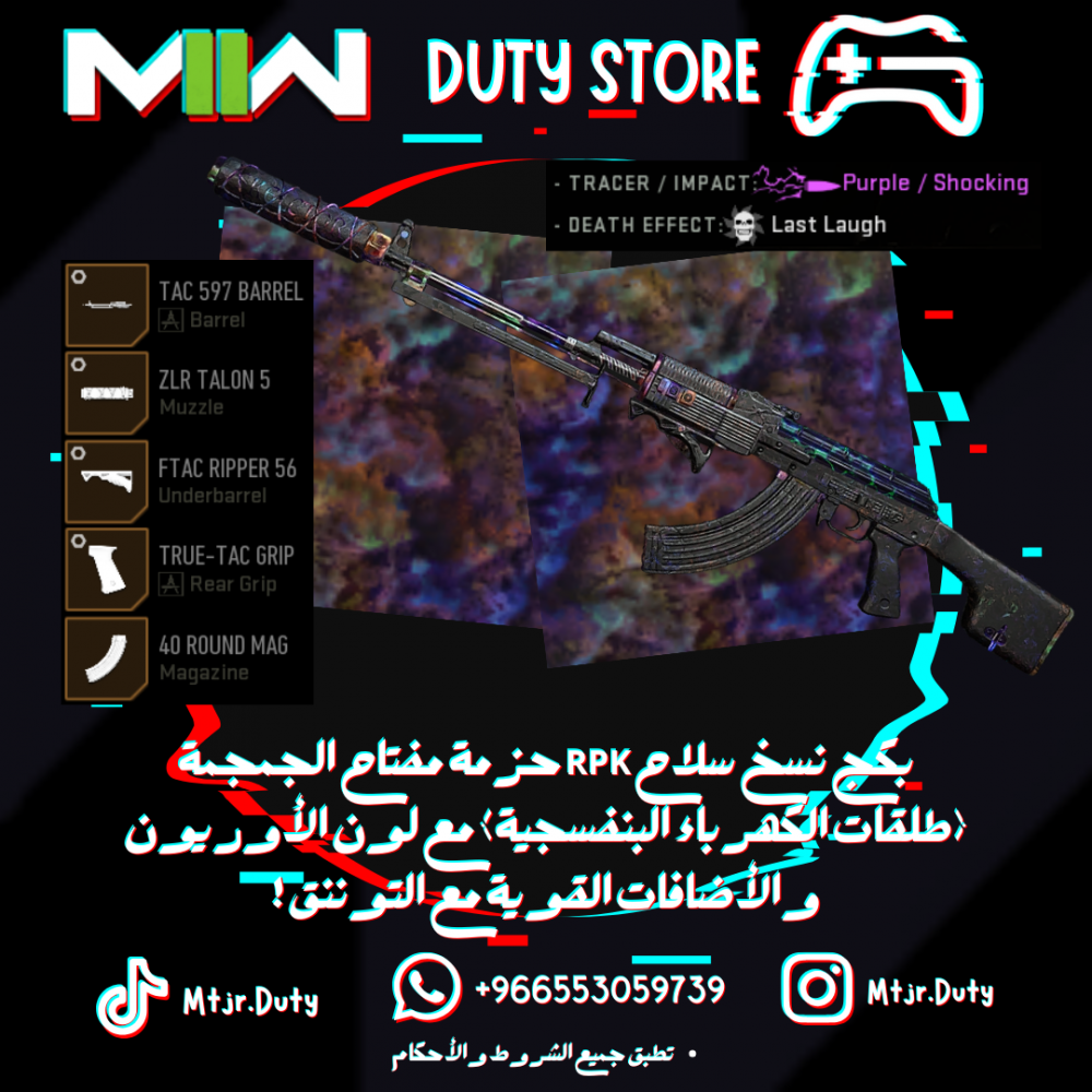 بكج نسخ سلاح RPK حزمة مفتاح الجمجمة (طلقات الكهرباء البنفسجية) مع لون الأوريون والأضافات القوية مع التوننق !