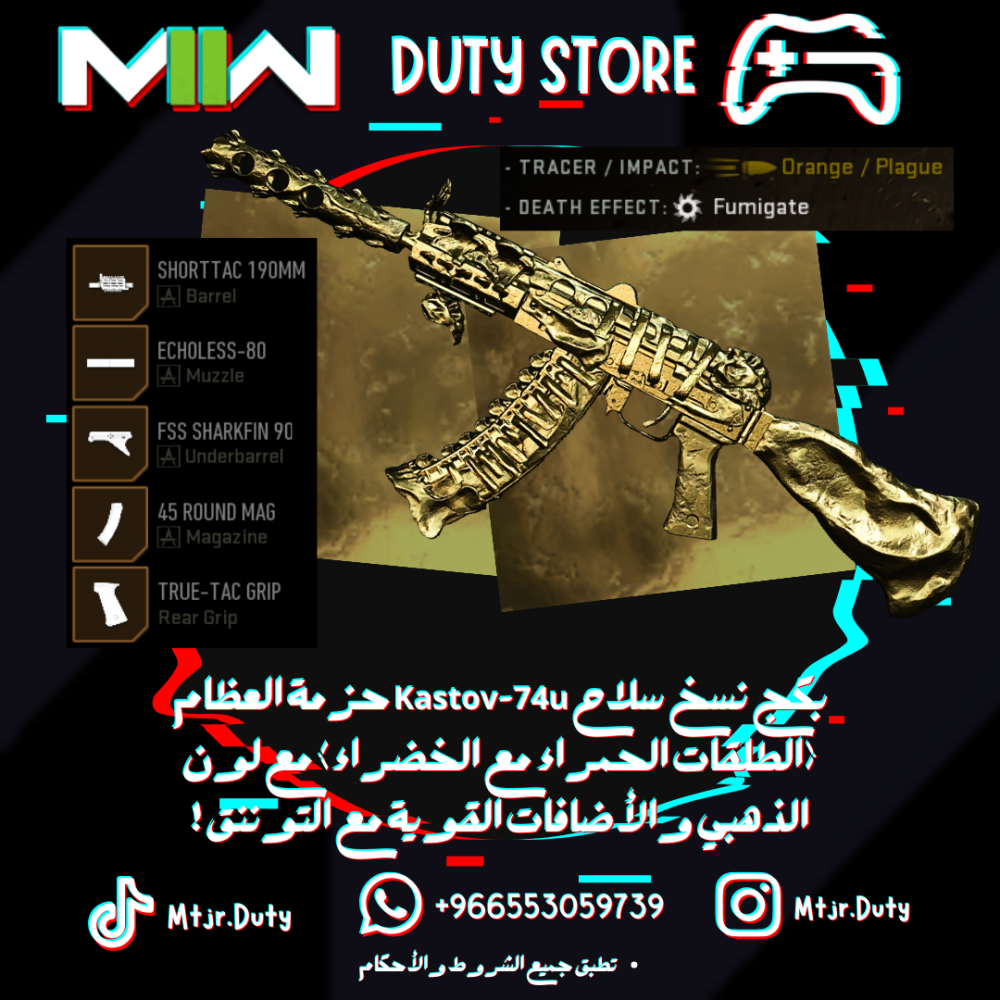 بكج نسخ سلاح Kastov-74u حزمة العظام (الطلقات الحمراء مع الخضراء) مع لون الذهبي والأضافات القوية مع التوننق !