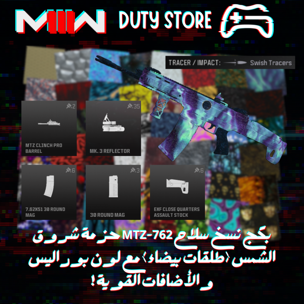 بكج نسخ سلاح MTZ-762 حزمة شروق الشمس (طلقات بيضاء) مع لون بوراليس والأضافات القوية ! (جميع المنصات)