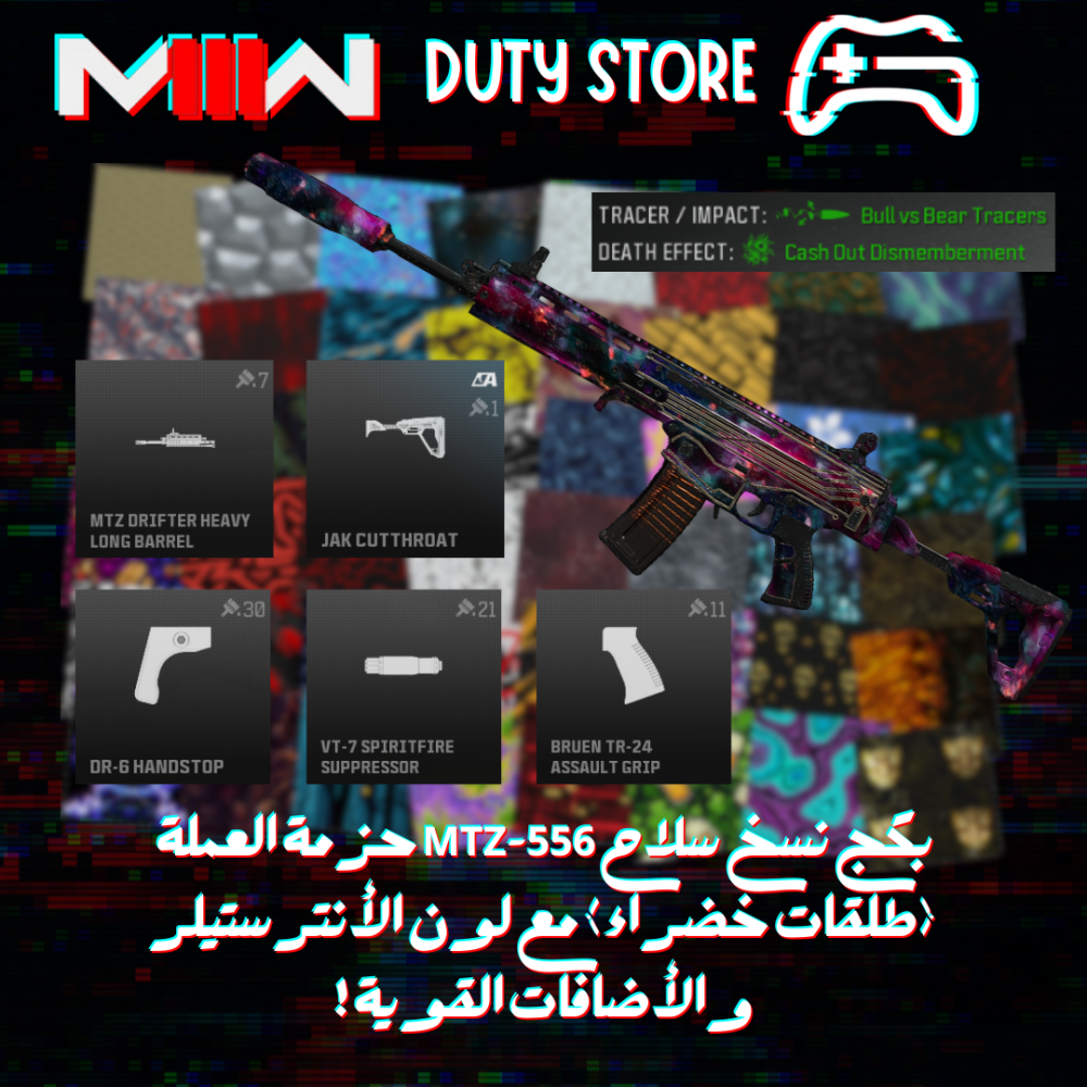 بكج نسخ سلاح MTZ-556 حزمة العملة (طلقات خضراء) مع لون الأنترستيلر والأضافات القوية ! (جميع المنصات)
