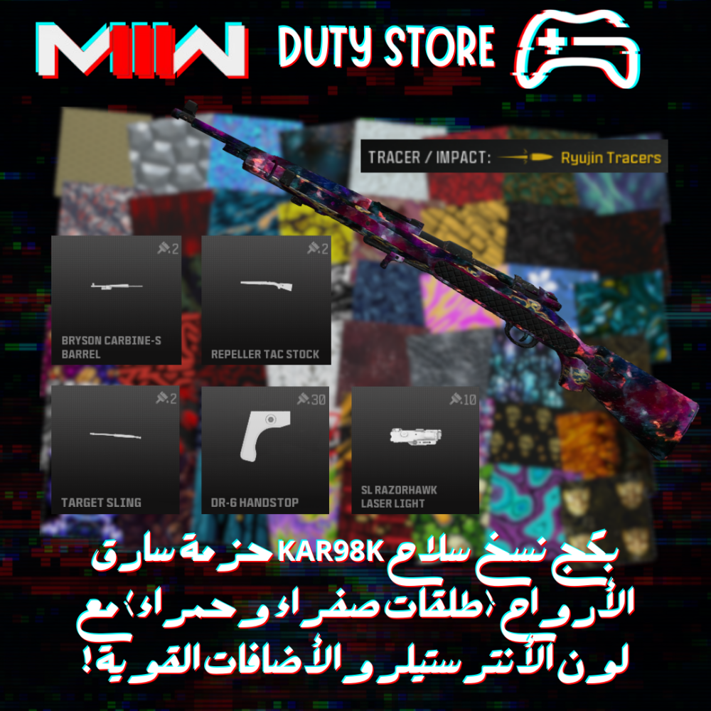 بكج نسخ سلاح KAR98K حزمة سارق الأرواح (طلقات صفراء وحمراء) مع لون الأنترستيلر والأضافات القوية ! (جميع المنصات)