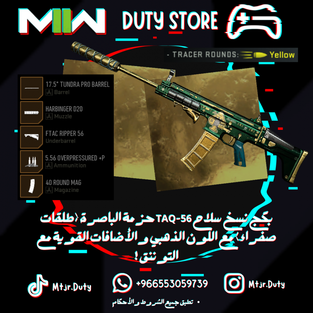 بكج نسخ سلاح TAQ-56 حزمة الباصرة (طلقات صفراء) مع اللون الذهبي والأضافات القوية مع التوننق !