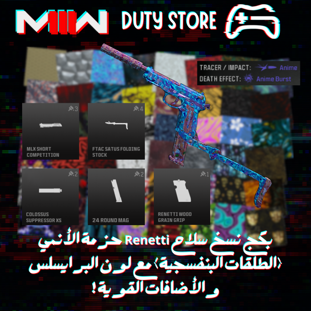 بكج نسخ سلاح Renetti حزمة الأنمي (الطلقات البنفسجية) مع لون البرايسلس والأضافات القوية ! (جميع المنصات)