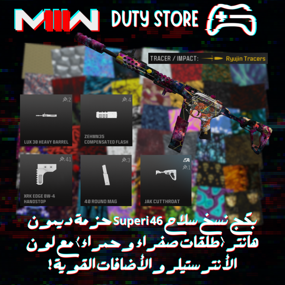 بكج نسخ سلاح Superi 46 حزمة ديمون هانتر (طلقات صفراء وحمراء) مع لون الأنترستيلر والأضافات القوية ! (جميع المنصات)