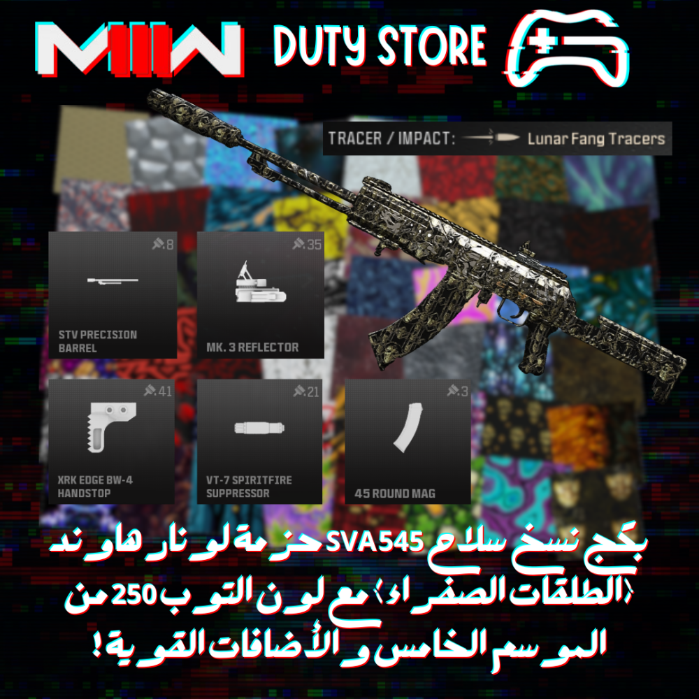 بكج نسخ سلاح SVA 545 حزمة لونار هاوند (الطلقات الصفراء) مع لون التوب 250 من الموسم الخامس والأضافات القوية ! (جميع المنصات)