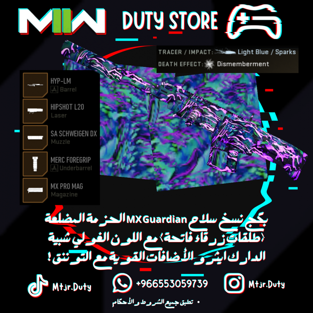 بكج نسخ سلاح MX Guardian الحزمة المضلعة (طلقات زرقاء فاتحة) مع اللون الغولي شبية الدارك ايثر والأضافات القوية مع التوننق !