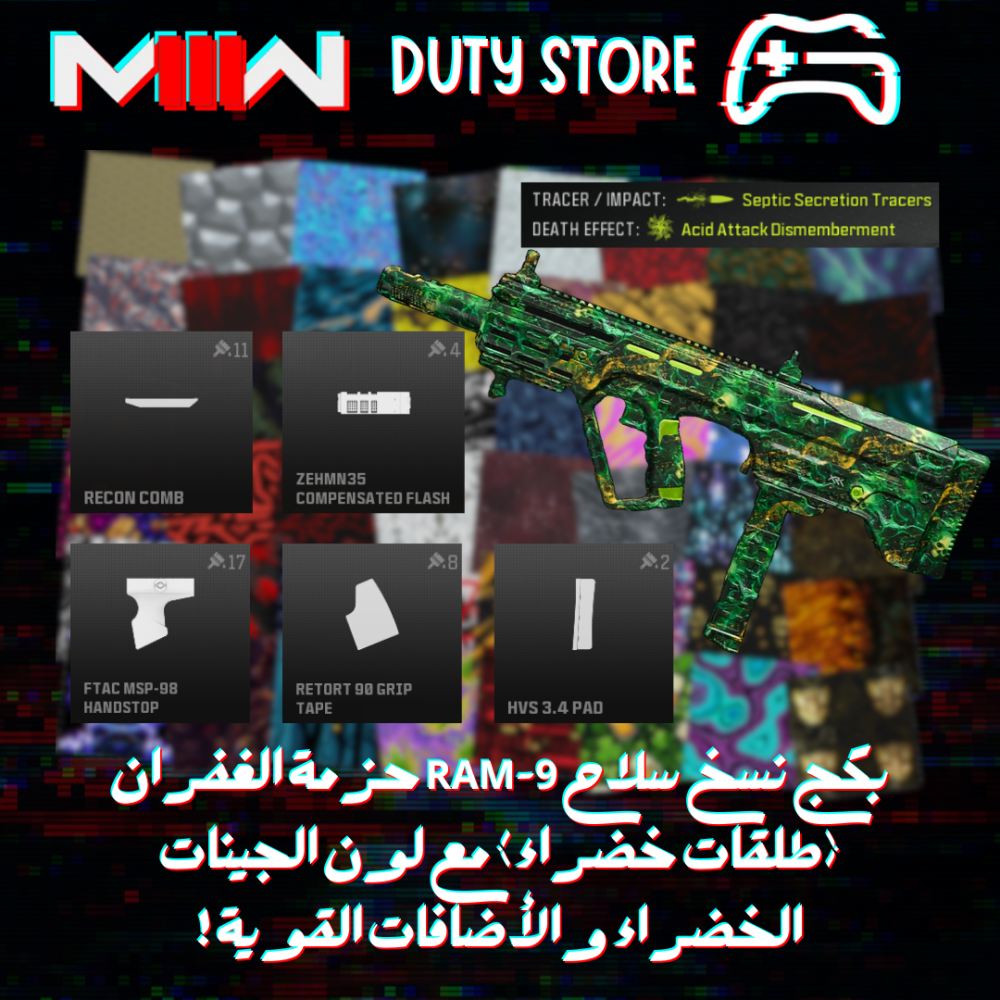 بكج نسخ سلاح RAM-9 حزمة الغفران (طلقات خضراء) مع لون الجينات الخضراء والأضافات القوية ! (جميع المنصات)