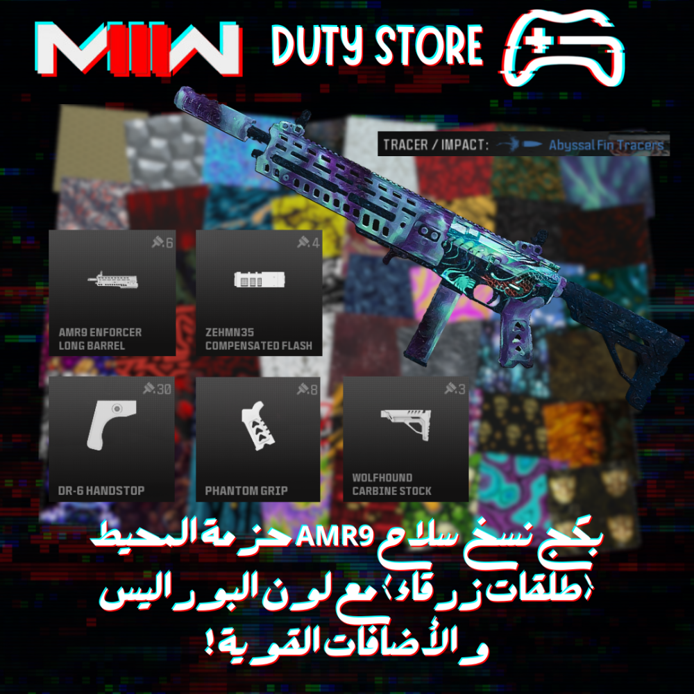 بكج نسخ سلاح AMR9 حزمة المحيط (طلقات زرقاء) مع لون البوراليس والأضافات القوية ! (جميع المنصات)