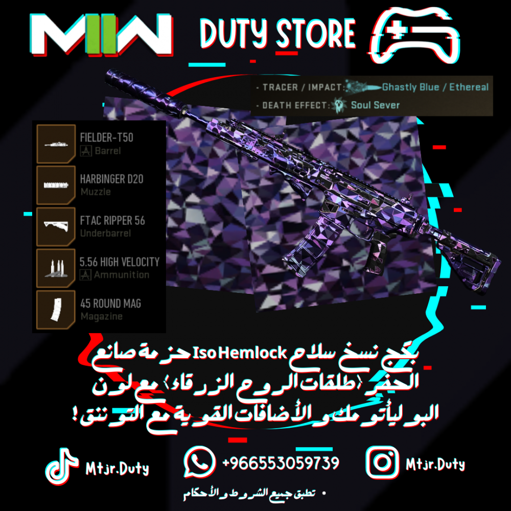 بكج نسخ سلاح Iso Hemlock حزمة صانع الحفر (طلقات الروح الزرقاء) مع لون البوليأتومك والأضافات القوية مع التوننق !
