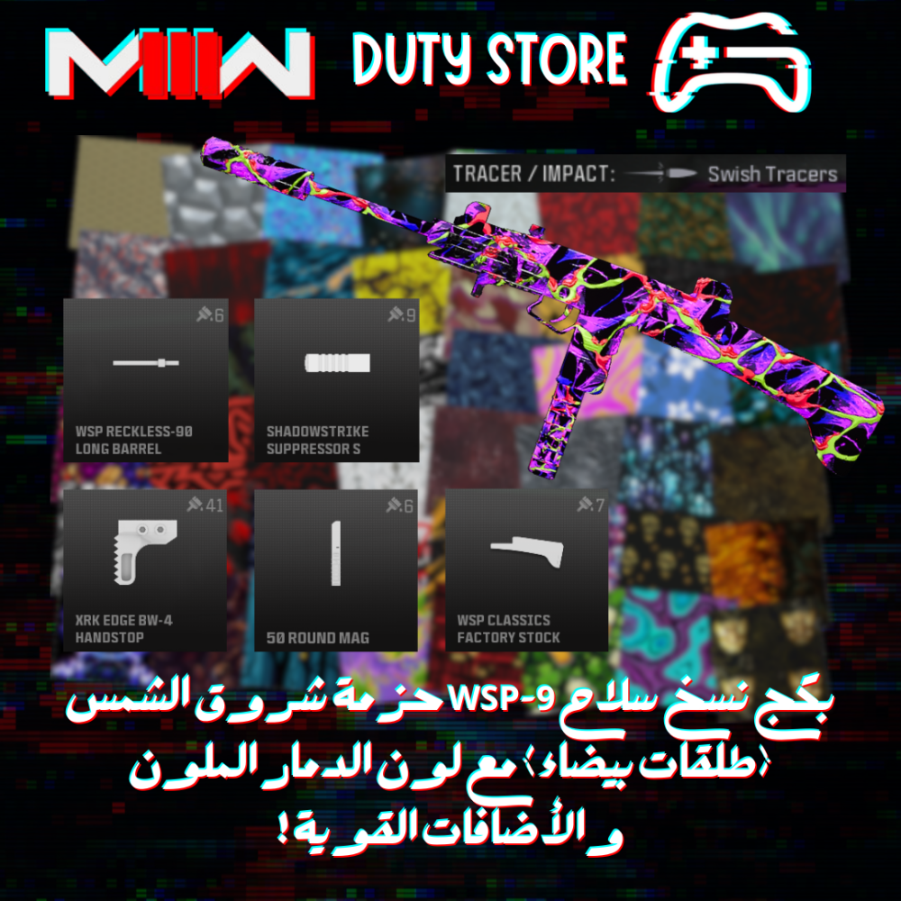 بكج نسخ سلاح WSP-9 حزمة شروق الشمس (طلقات بيضاء) مع لون الدمار الملون والأضافات القوية ! (جميع المنصات)