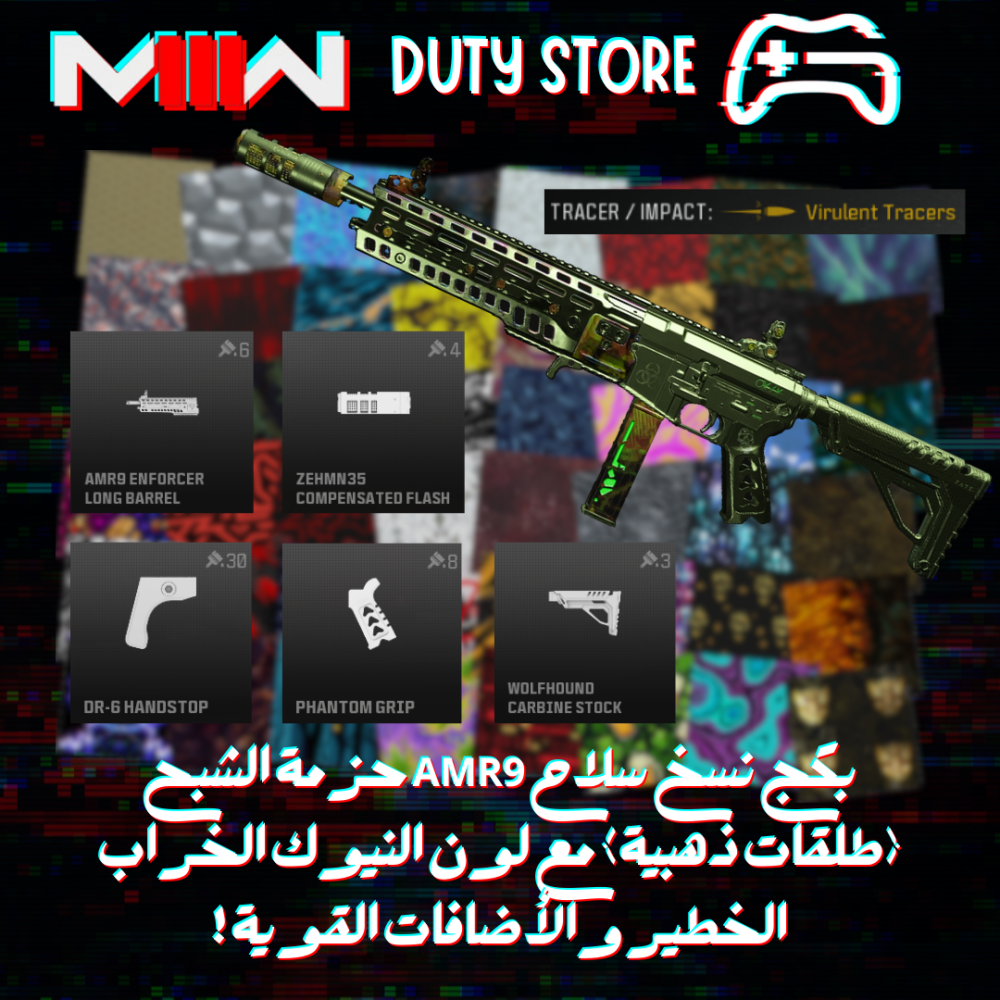 بكج نسخ سلاح AMR9 حزمة الشبح (طلقات ذهبية) مع لون النيوك الخراب الخطير والأضافات القوية ! (جميع المنصات)