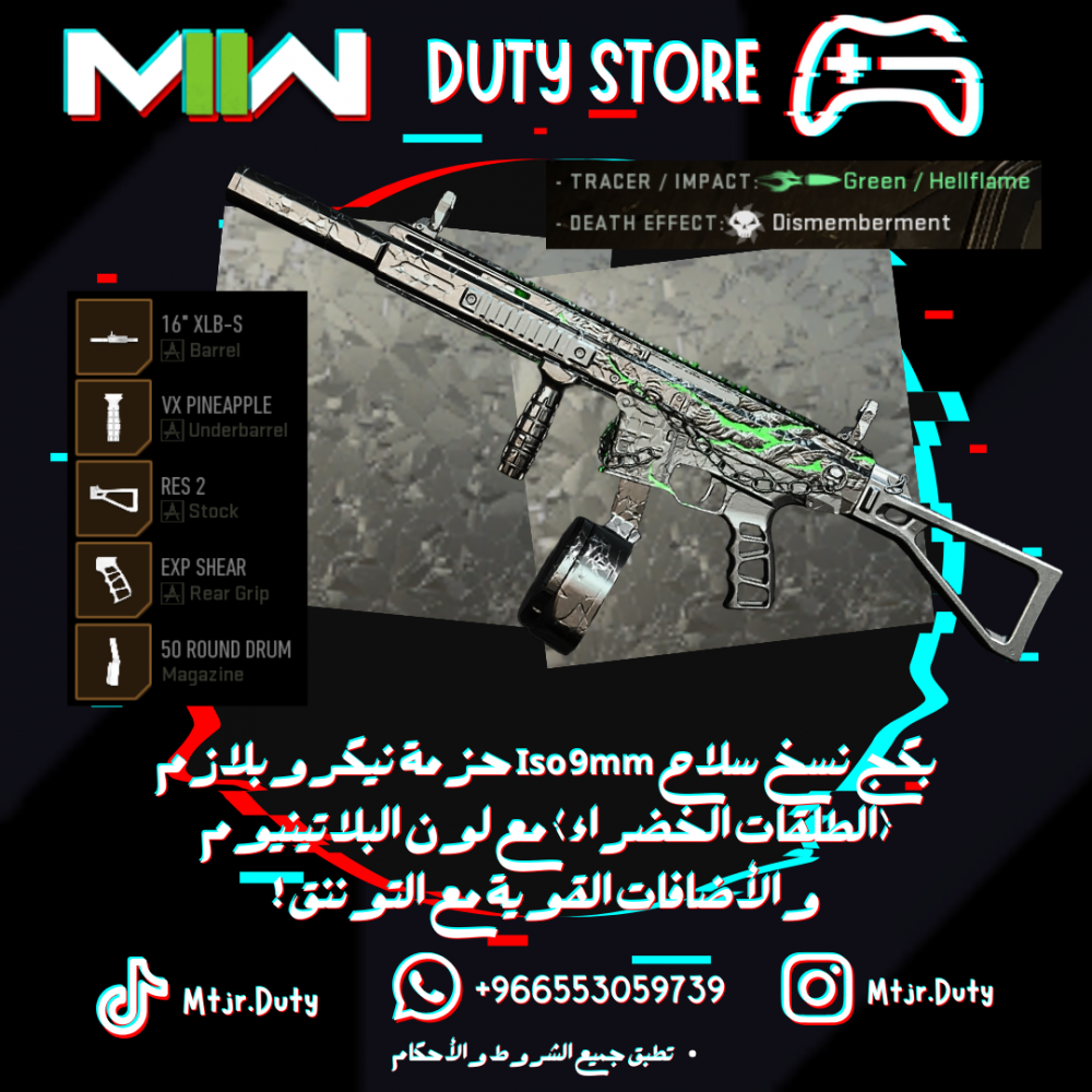 بكج نسخ سلاح Iso 9mm حزمة نيكروبلازم (الطلقات الخضراء) مع لون البلاتينيوم والأضافات القوية مع التوننق !
