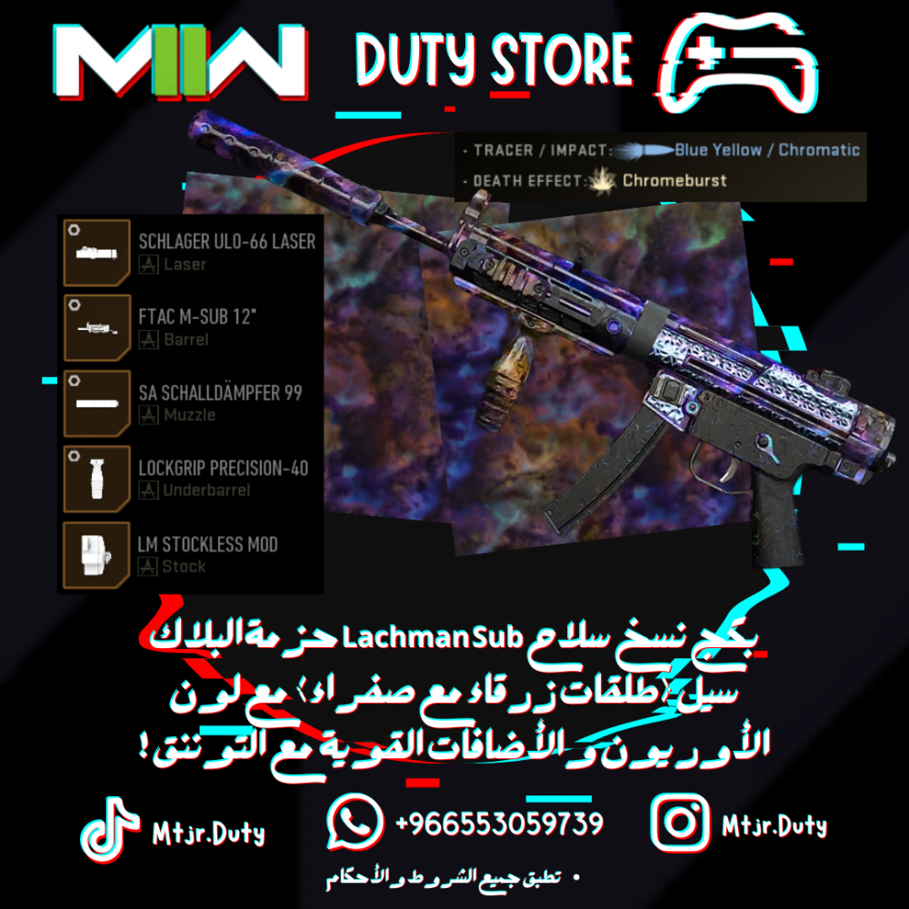 بكج نسخ سلاح Lachman Sub حزمةالبلاك سيل (طلقات زرقاء مع صفراء) مع لون الأوريون والأضافات القوية مع التوننق !