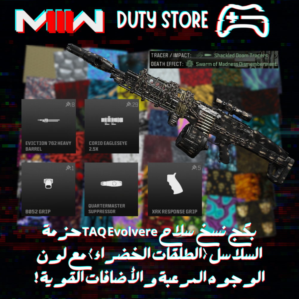 بكج نسخ سلاح TAQ Evolvereحزمة السلاسل (الطلقات الخضراء) مع لون الوجوه المرعبة والأضافات القوية ! (جميع المنصات)