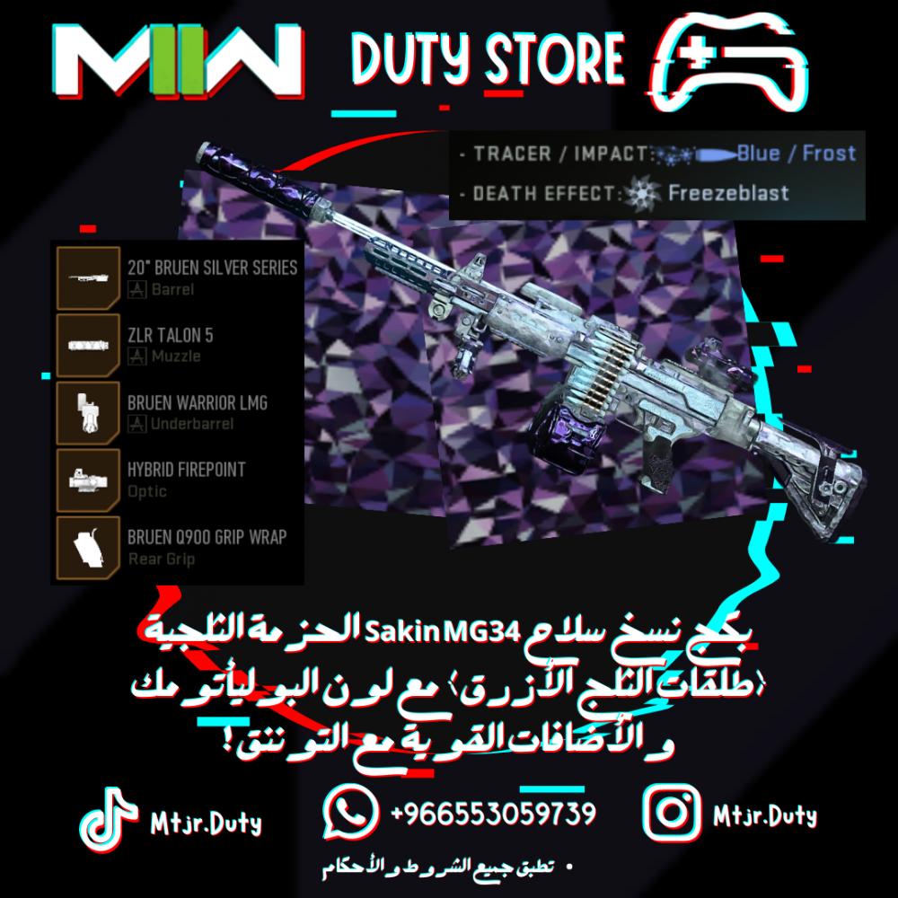 بكج نسخ سلاح Sakin MG34 الحزمة الثلجية (طلقات الثلج الأزرق) مع لون البوليأتومك والأضافات القوية مع التوننق !