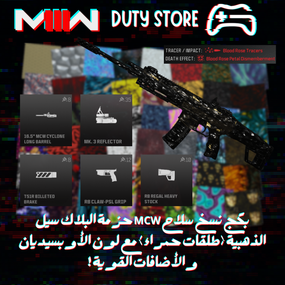 بكج نسخ سلاح MCW حزمة البلاك سيل الذهبية (طلقات حمراء) مع لون الأوبسيديان والأضافات القوية ! (جميع المنصات)