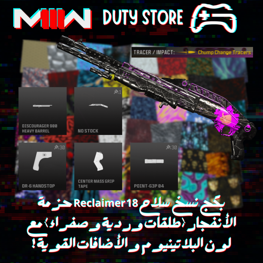بكج نسخ سلاح Reclaimer 18 حزمة الأنفجار (طلقات وردية وصفراء) مع لون البلاتينيوم والأضافات القوية ! (جميع المنصات)
