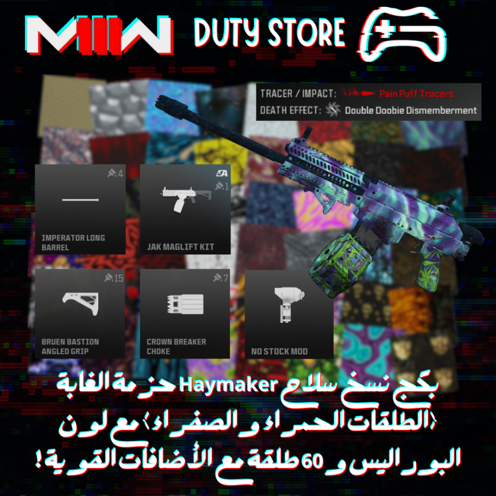 بكج نسخ سلاح Haymaker حزمة الغابة (الطلقات الحمراء والصفراء) مع لون البوراليس و 60 طلقة مع الأضافات القوية ! (جميع المنصات)