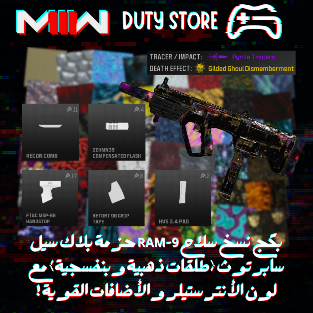 بكج نسخ سلاح RAM-9 حزمة بلاك سيل سابرتوث (طلقات ذهبية وبنفسجية) مع لون الأنترستيلر والأضافات القوية ! (جميع المنصات)