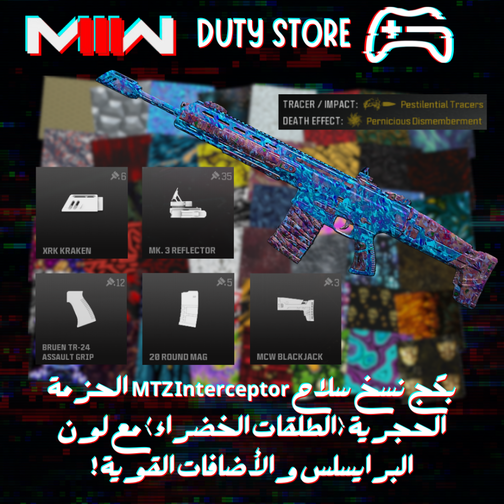 بكج نسخ سلاح MTZ Interceptor الحزمة الحجرية (الطلقات الخضراء) مع لون البرايسلس والأضافات القوية ! (جميع المنصات)