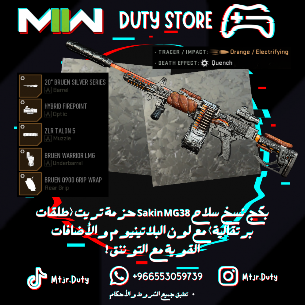 بكج نسخ سلاح Sakin MG38 حزمة تريت (طلقات برتقالية) مع لون البلاتينيوم والأضافات القوية مع التوننق !