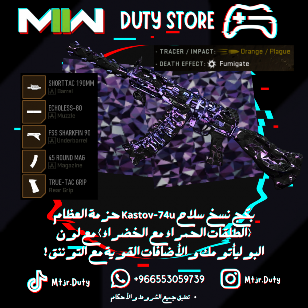 بكج نسخ سلاح Kastov-74u حزمة العظام (الطلقات الحمراء مع الخضراء) مع لون البوليأتومك والأضافات القوية مع التوننق !