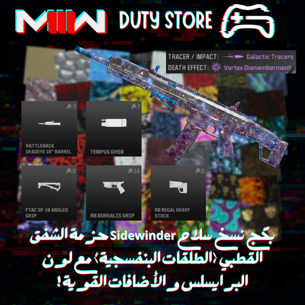 بكج نسخ سلاح Sidewinder حزمة الشفق القطبي (الطلقات البنفسجية) مع لون البرايسلس والأضافات القوية ! (جميع المنصات)