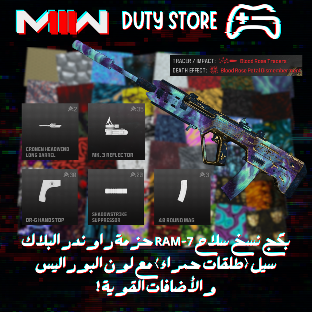 بكج نسخ سلاح RAM-7 حزمة راوندر البلاك سيل (طلقات حمراء) مع لون البوراليس والأضافات القوية ! (جميع المنصات)