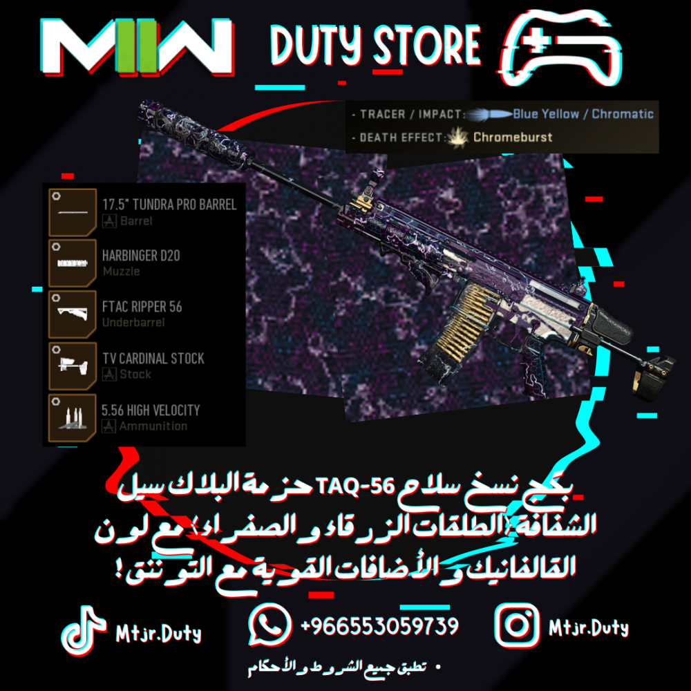 بكج نسخ سلاح TAQ-56 حزمة البلاك سيل الشفافة (الطلقات الزرقاء والصفراء) مع لون القالفانيك والأضافات القوية مع التوننق !