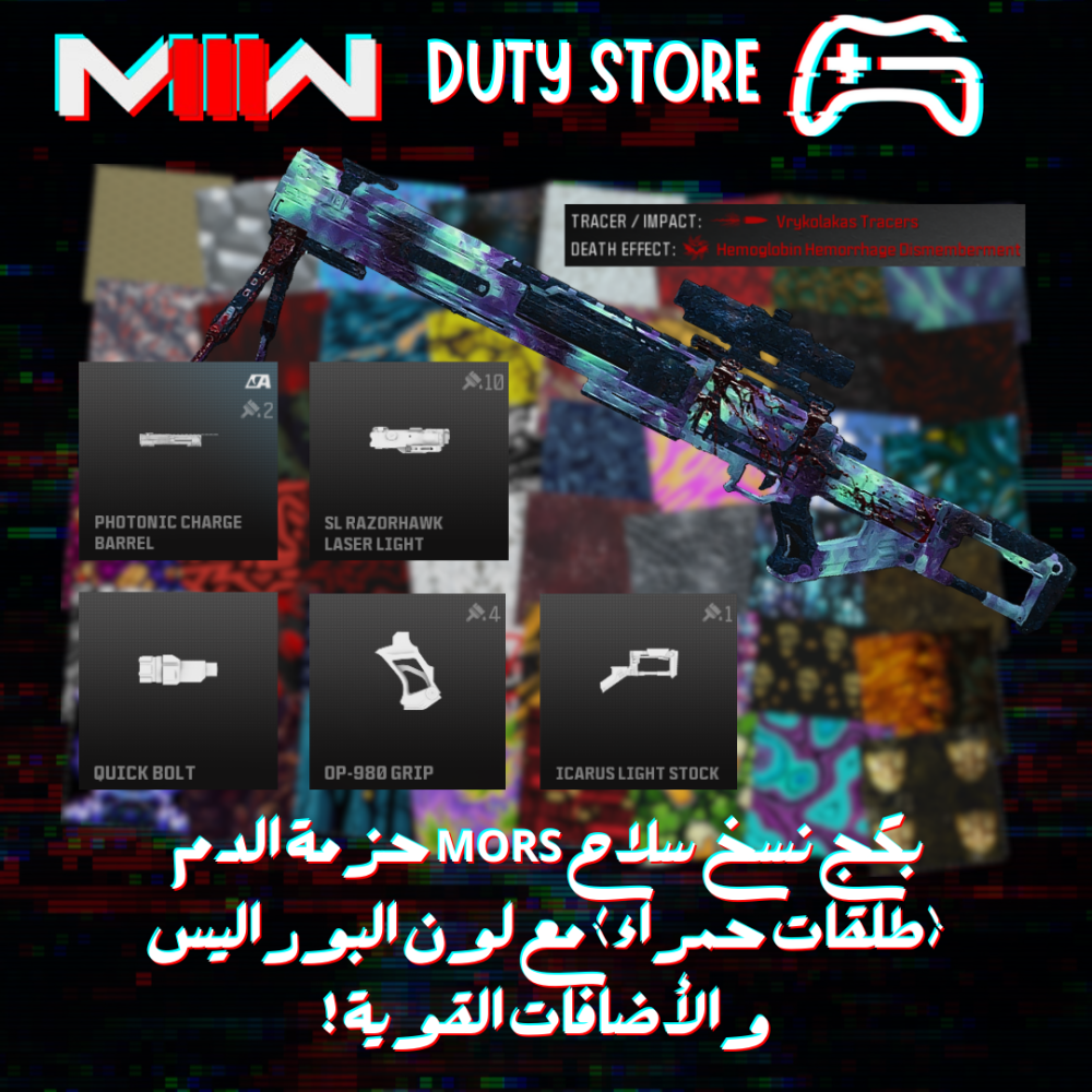 بكج نسخ سلاح MORS حزمة الدم (طلقات حمراء) مع لون البوراليس والأضافات القوية ! (جميع المنصات)