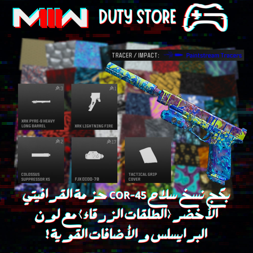 بكج نسخ سلاح COR-45 حزمة القرافيتي الأخضر (الطلقات الزرقاء) مع لون البرايسلس والأضافات القوية ! (جميع المنصات)