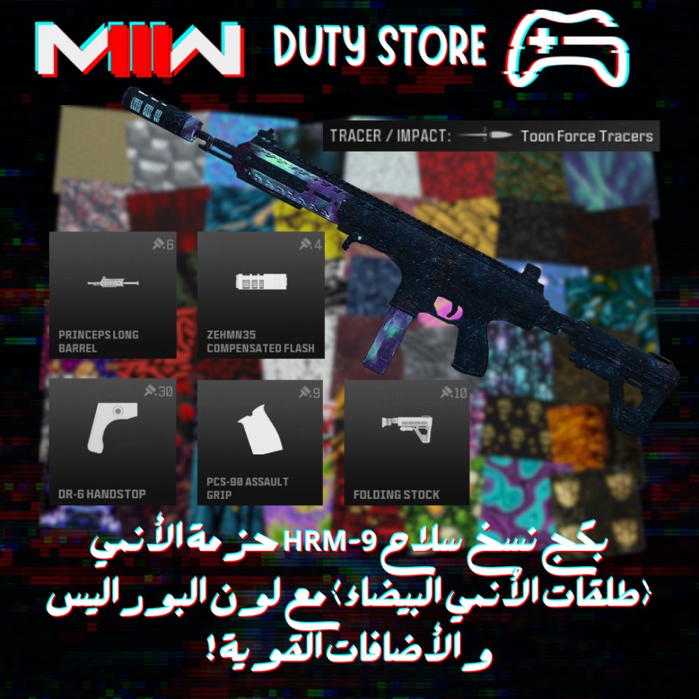 بكج نسخ سلاح HRM-9 حزمة الأنمي (طلقات الأنمي البيضاء) مع لون البوراليس والأضافات القوية ! (جميع المنصات)