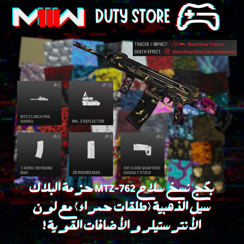 بكج نسخ سلاح MTZ-762 حزمة البلاك سيل الذهبية (طلقات حمراء) مع لون الأنترستيلر والأضافات القوية ! (جميع المنصات)