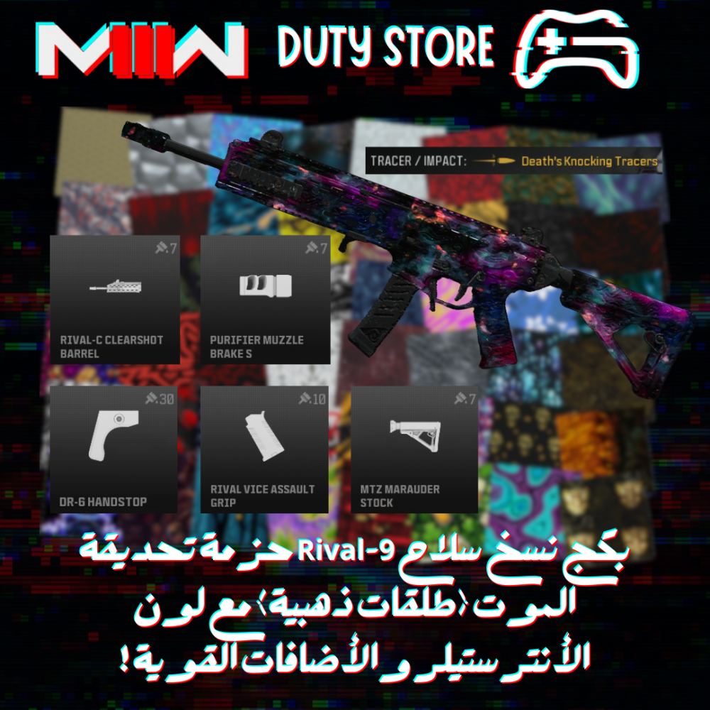 بكج نسخ سلاح Rival-9 حزمة تحديقة الموت (طلقات ذهبية) مع لون الأنترستيلر والأضافات القوية ! (جميع المنصات)