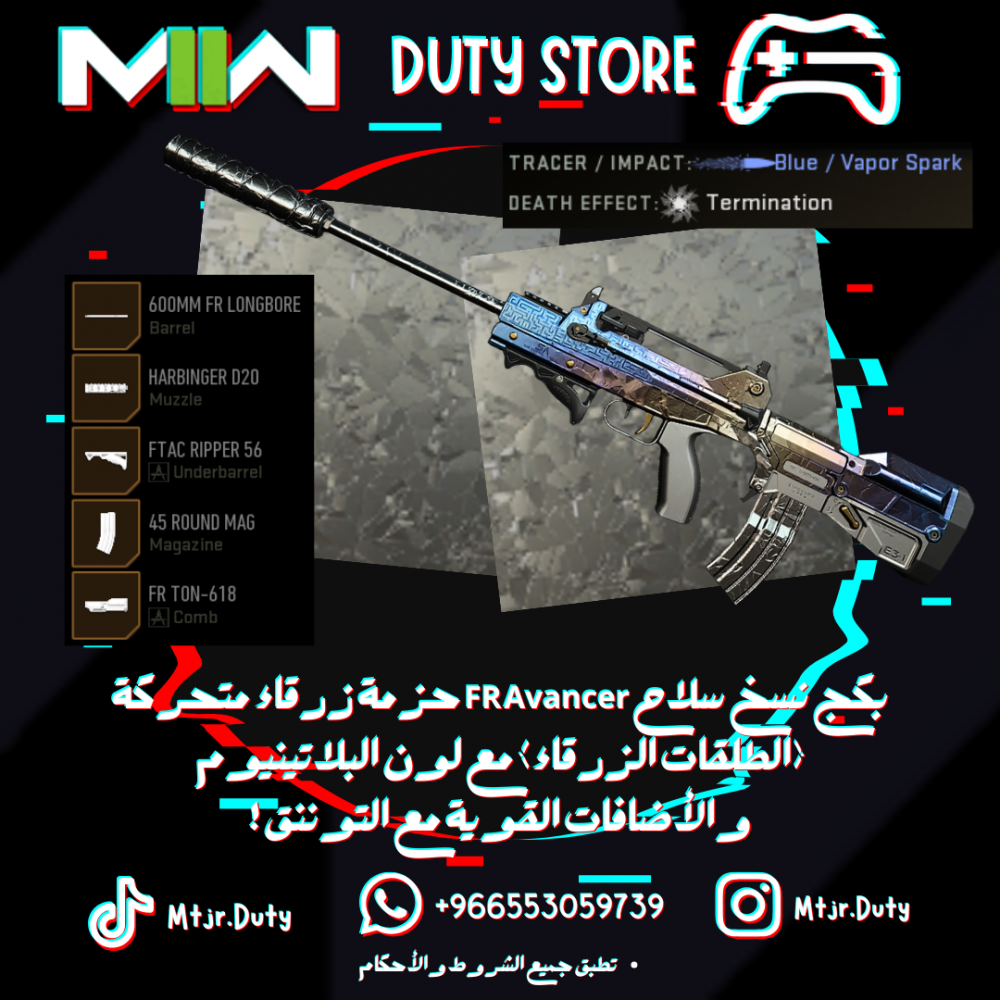 بكج نسخ سلاح FR Avancer حزمة زرقاء متحركة (الطلقات الزرقاء) مع لون البلاتينيوم والأضافات القوية مع التوننق !