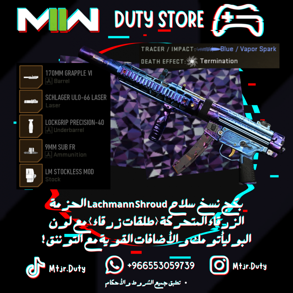 بكج نسخ سلاح Lachmann Shroud الحزمة الزرقاءالمتحركة (طلقات زرقاء) مع لون البوليأتومك والأضافات القوية مع التوننق !