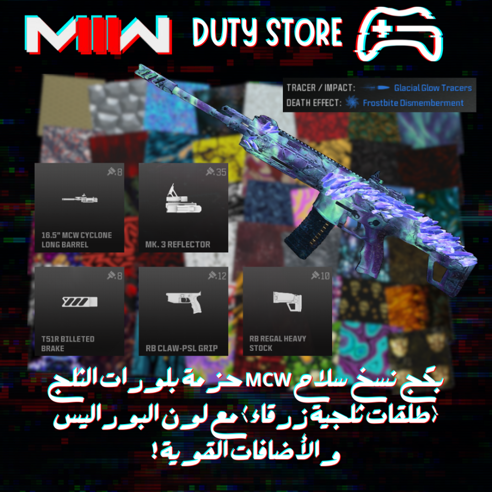 بكج نسخ سلاح MCW حزمة بلورات الثلج (طلقات ثلجية زرقاء) مع لون البوراليس والأضافات القوية ! (جميع المنصات)